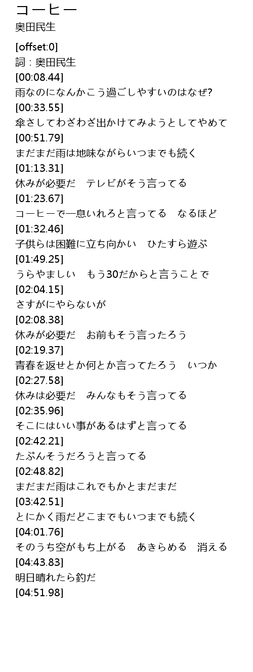 | [00:03.13] | 詞:奥田民生 |