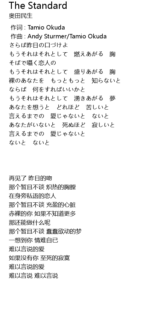 | [00:00.000] | 作词 : Tamio Okuda |