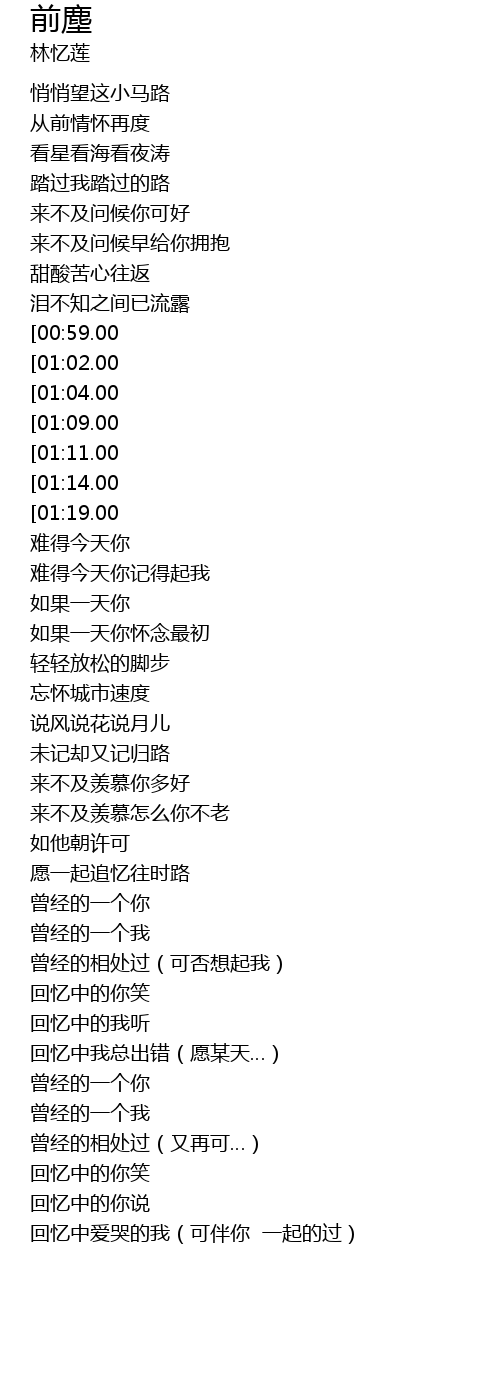 | [02:11.00] | yuàn yì qǐ zhuī yì wǎng shí lù |