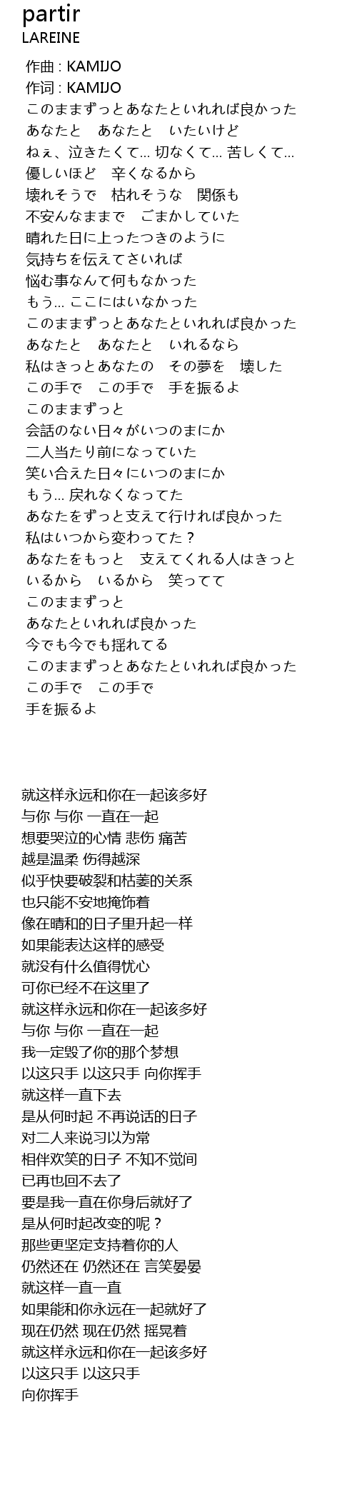 | [00:00.000] | zuo qu : KAMIJO |