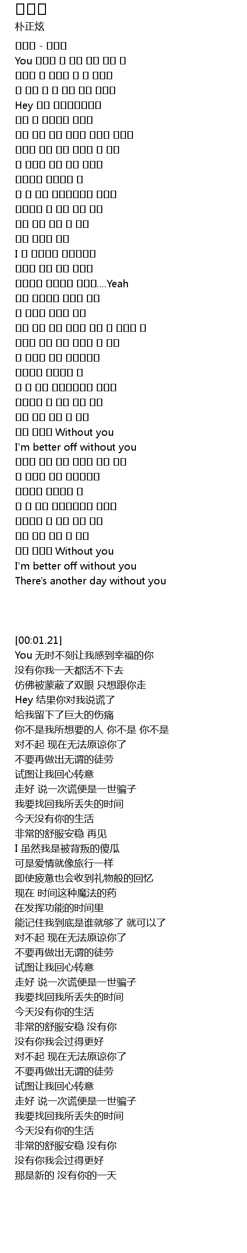 | [00:14.52] | You 언제나 날 행복 하게 해준 너 |