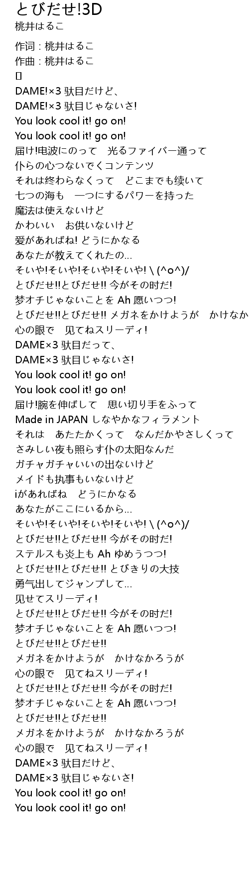| Song | とびだせ!3D |