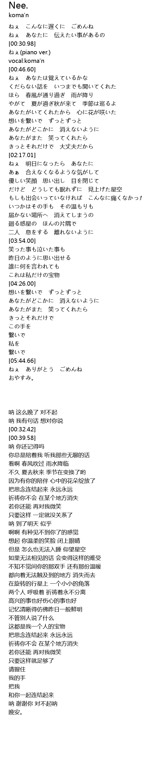| [00:32.42] | ねぇ(piano ver.) |