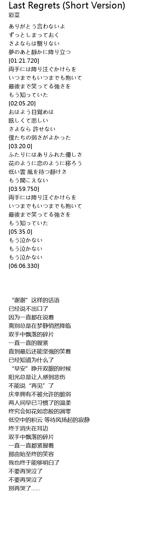 | [05:35.560] | もう泣かない |