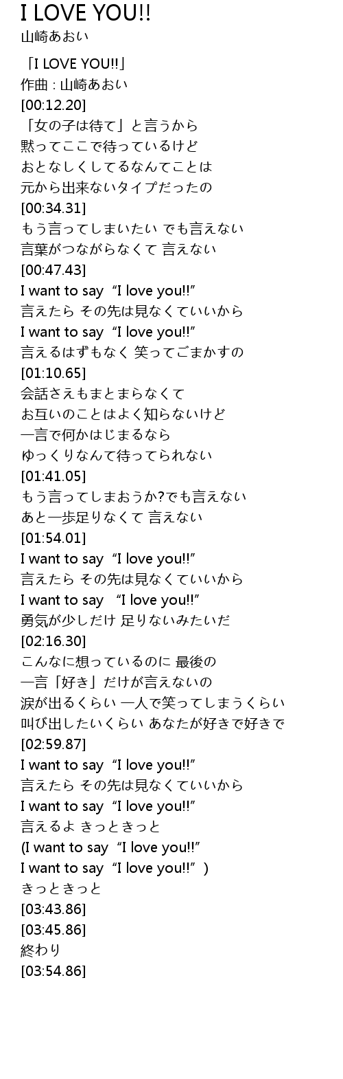 | [00:00.20] | 「I LOVE YOU!!」 |