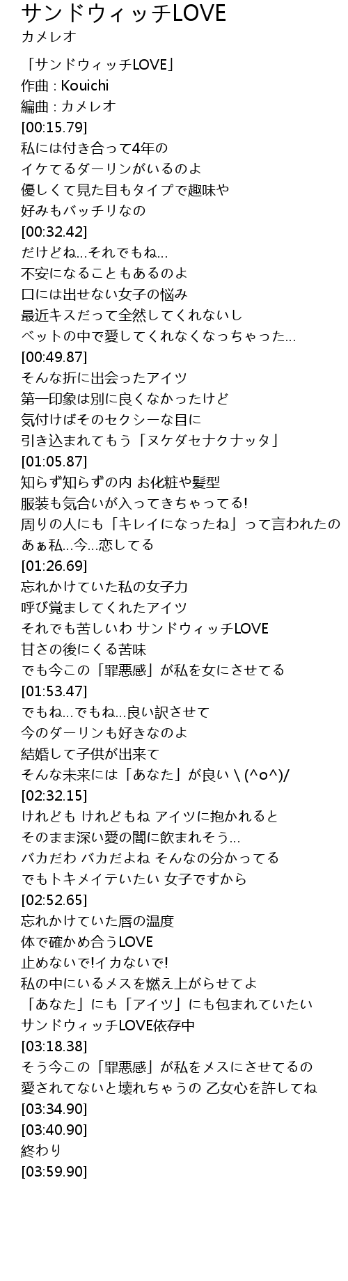 | [01:36.95] | それでも苦しいわ サンドウィッチLOVE |