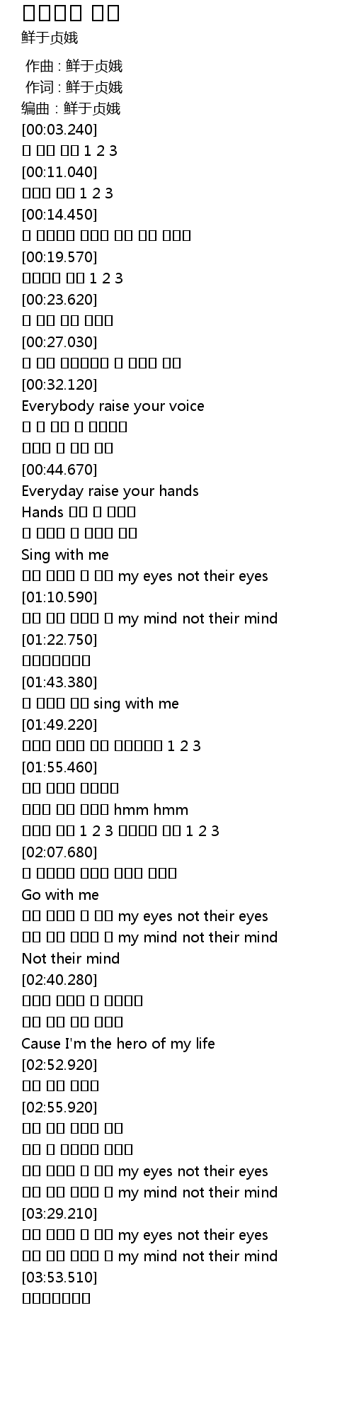 | [03:17.730] | 세상 가장 소중한 건 my mind not their mind |
