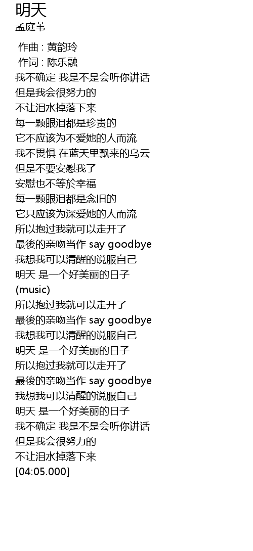| [01:46.000] | 明天 是一个好美丽的日子 |