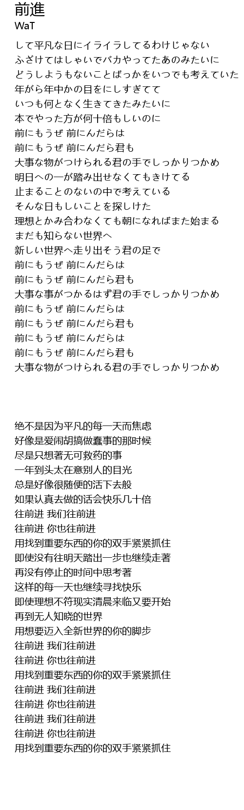| [01:15.600] | 前にもうぜ 前にんだら君も |