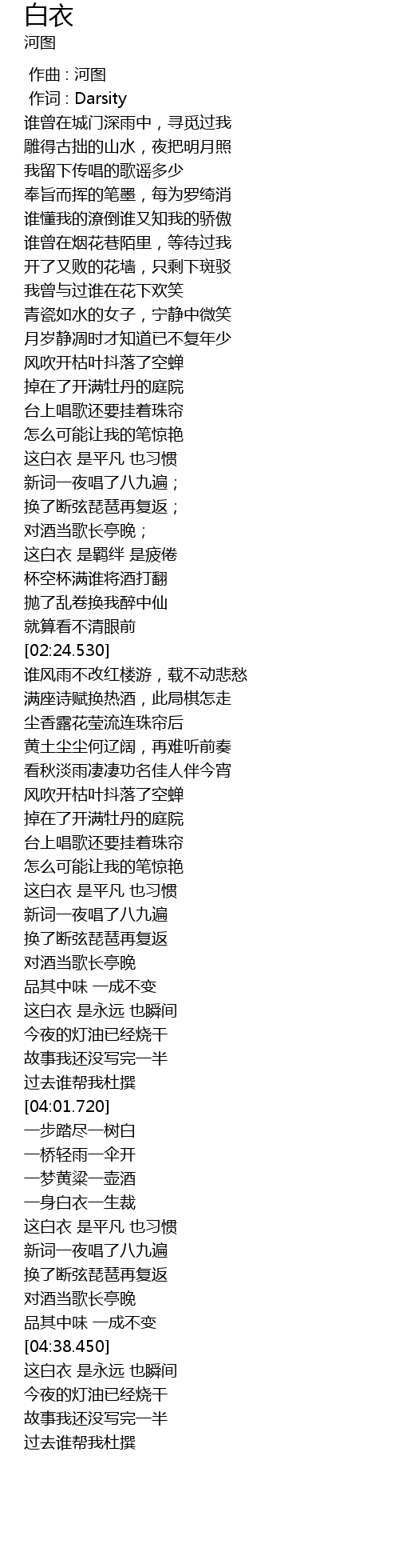 | [04:23.080] | 这白衣 是平凡 也习惯 |