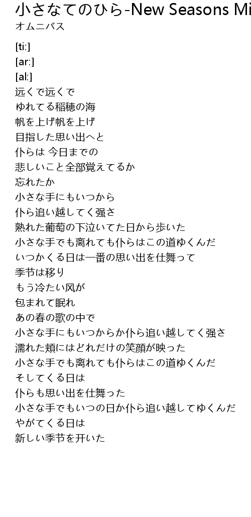| [03:29.13] | 小さな手でもいつの日か仆ら追い越してゆくんだ |