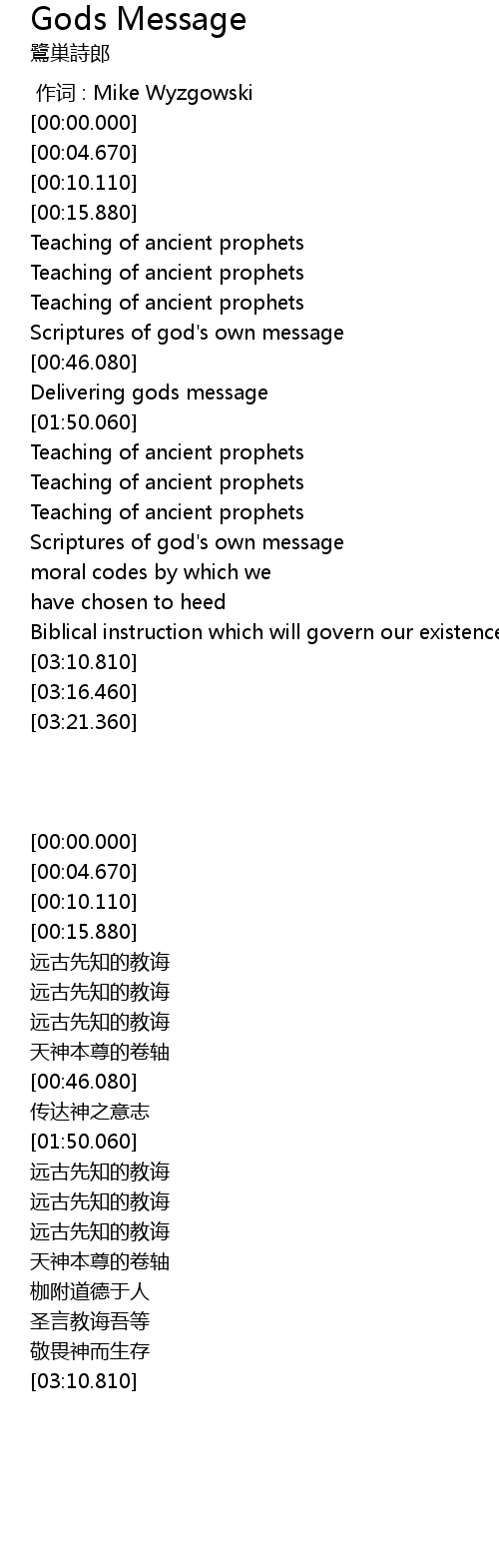 | [00:00.00] | zuo ci : Mike Wyzgowski |