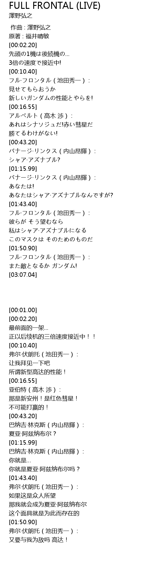 | [03:00.81] | フル·フロンタル(池田秀一) : |