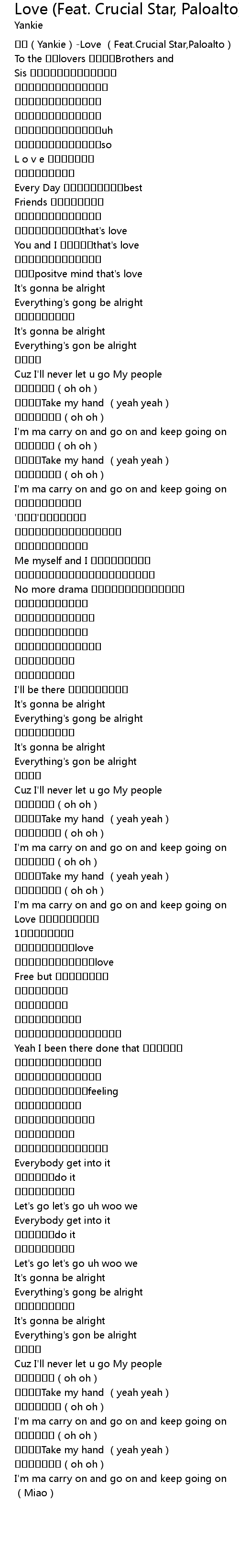 | [00:00.999] | 얀키(Yankie)-Love (Feat.Crucial Star,Paloalto) |
