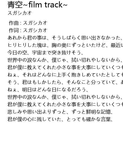 | [00:45.29] | 世界中の涙なんか、僕じゃ、拭い切れやしないから、 |