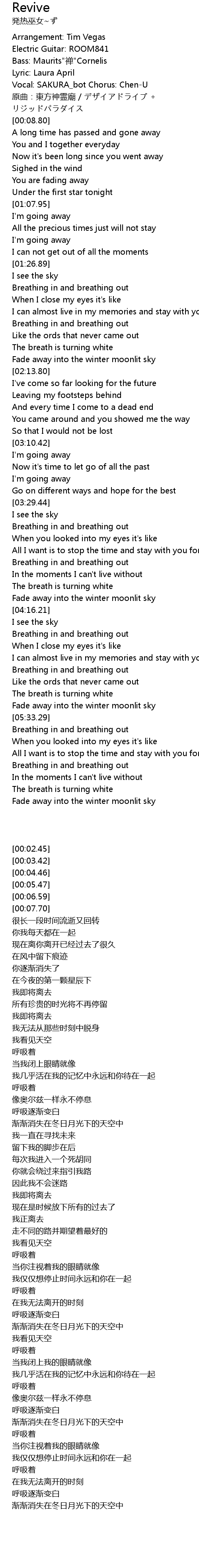 | [00:06.59] | Vocal: SAKURA_bot Chorus: ChenU |