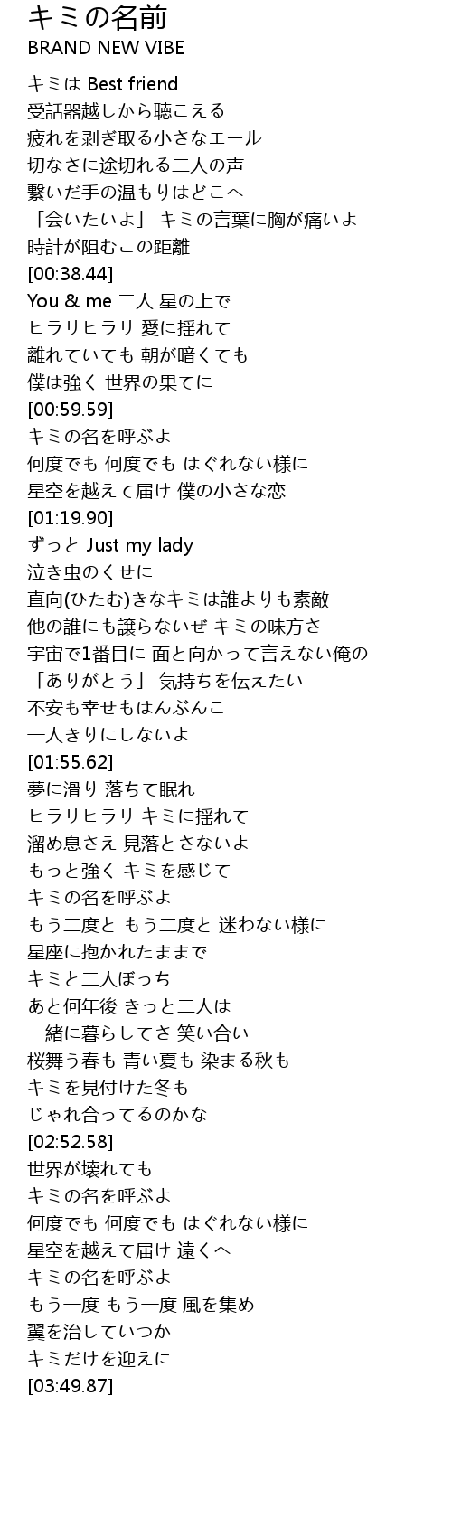 | Song | キミの名前 |