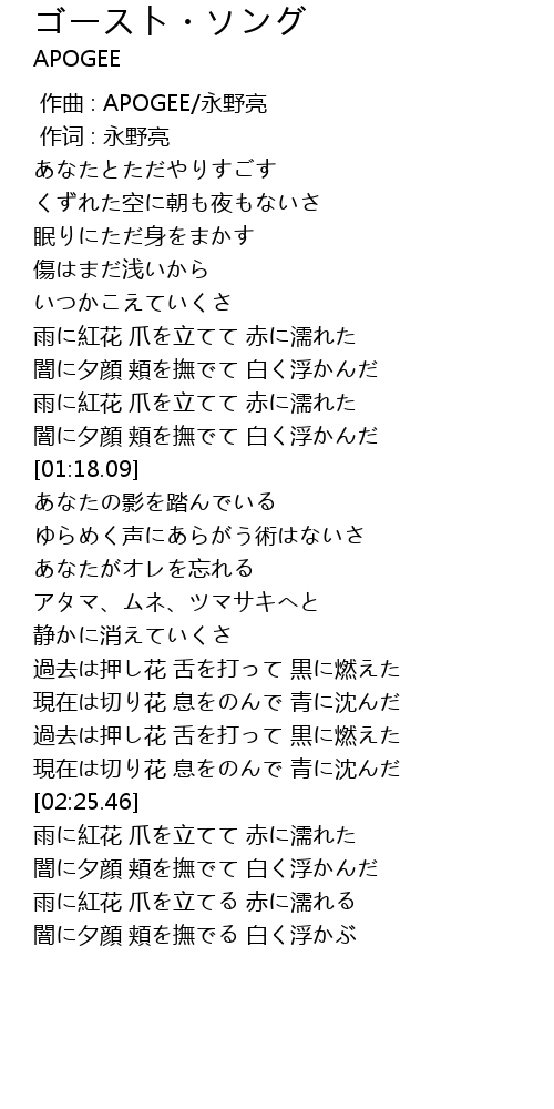 | [03:42.83] | 闇に夕顔 頬を撫でる 白く浮かぶ |
