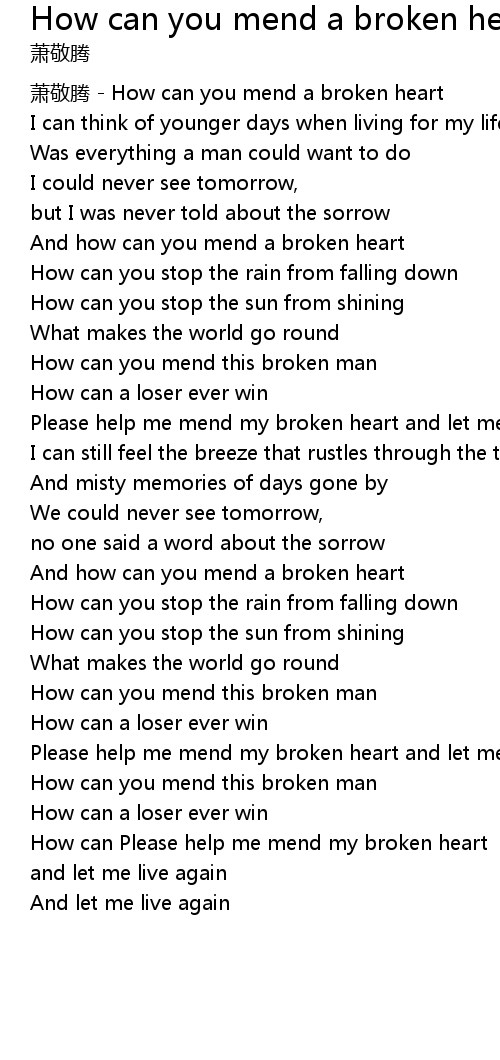 | [00:01.63] | xiāo jìng téng How can you mend a broken heart |