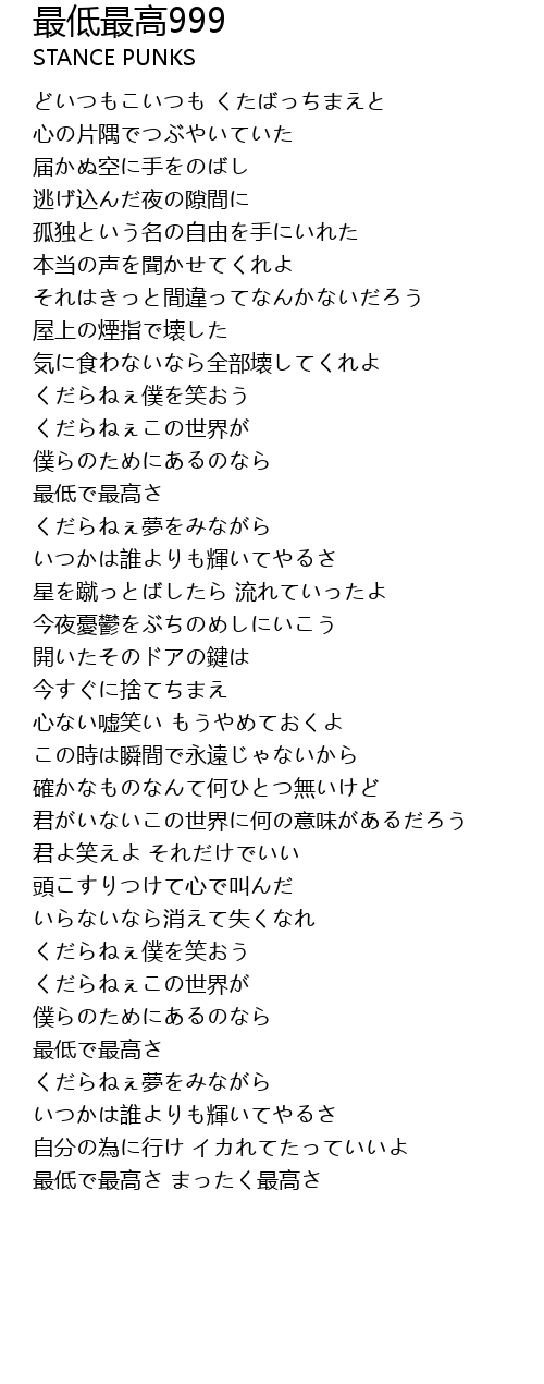 最低で最高さ まったく最高さ |