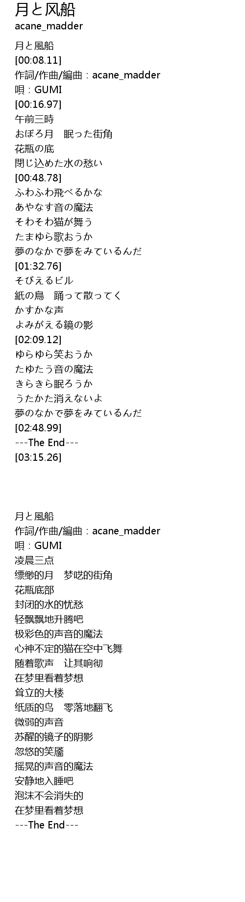 | [00:11.80] | 作詞/作曲/編曲:acane_madder |