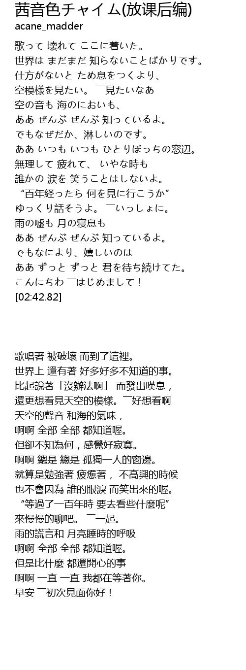 | [00:00.00] | 歌って 壊れて ここに着いた。 |