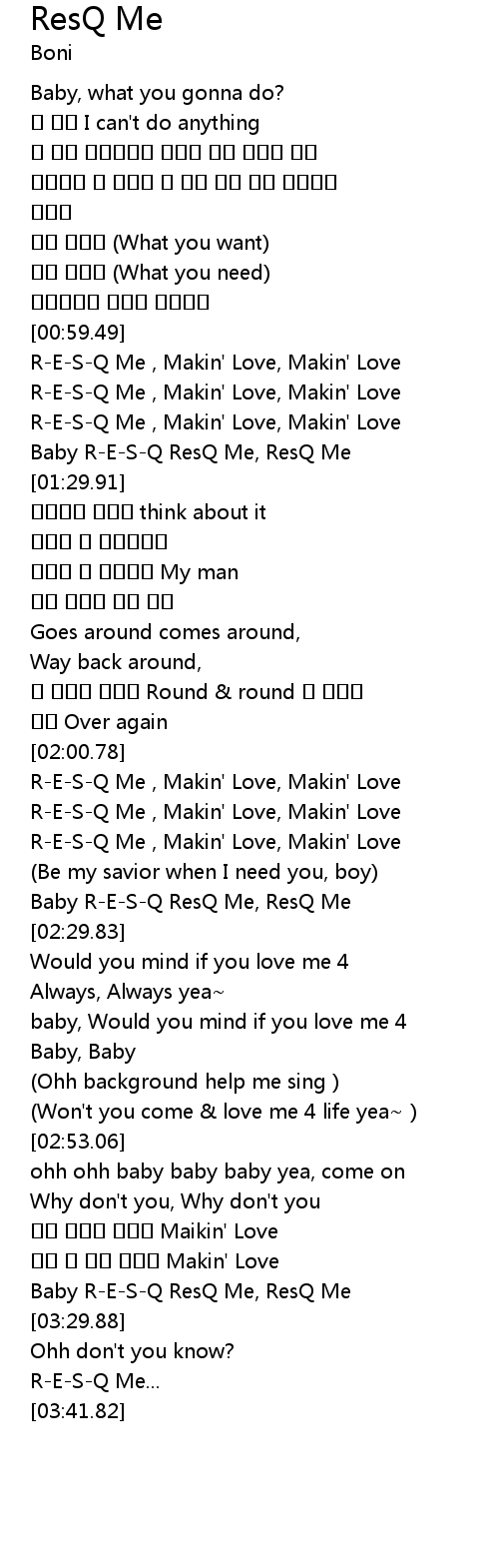 | [03:22.81] | Baby RESQ ResQ Me, ResQ Me |