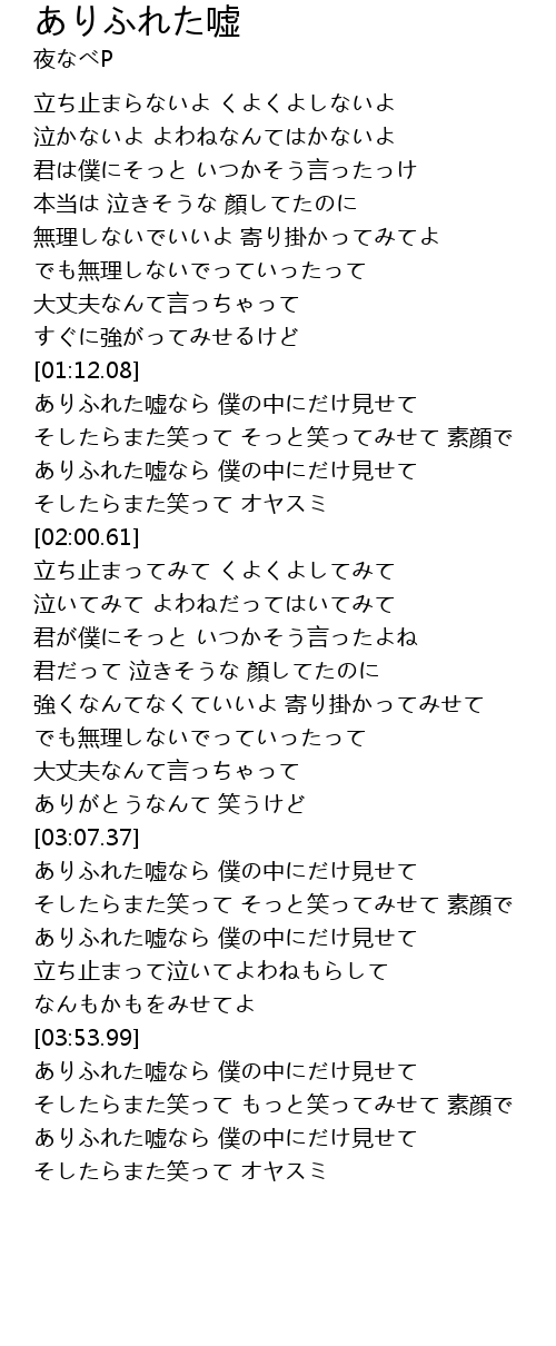 | [04:17.33] | ありふれた嘘なら 僕の中にだけ見せて |
