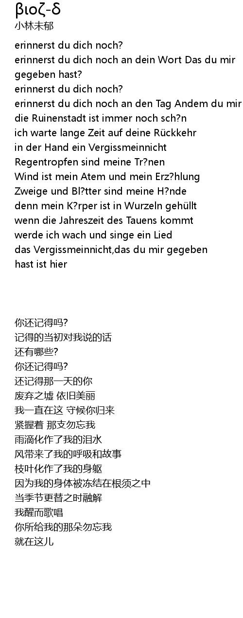 | [01:43.12] | das Vergissmeinnicht,das du mir gegeben |