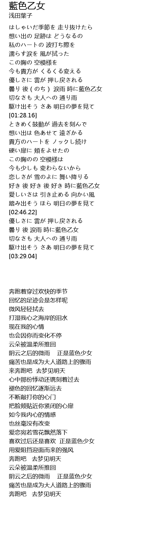 | [02:24.63] | 好き 後 好き 後 好き 時に藍色乙女 |