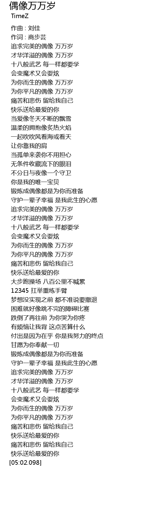 | [02:53.287] | 为你平凡的偶像 万万岁 |