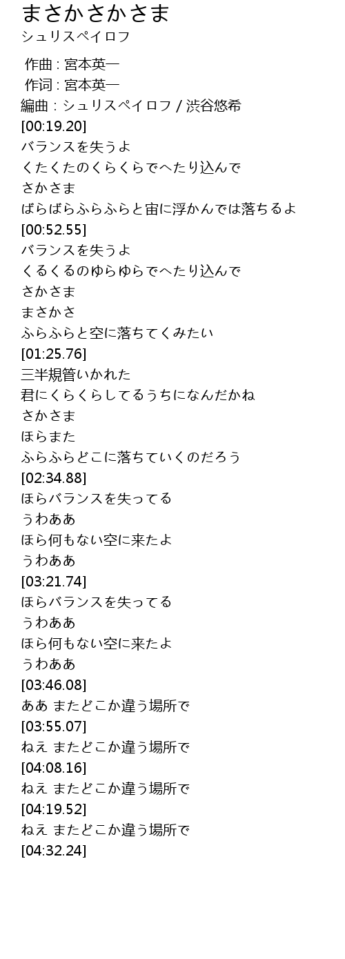| [00:13.58] | 編曲:シュリスペイロフ/渋谷悠希 |