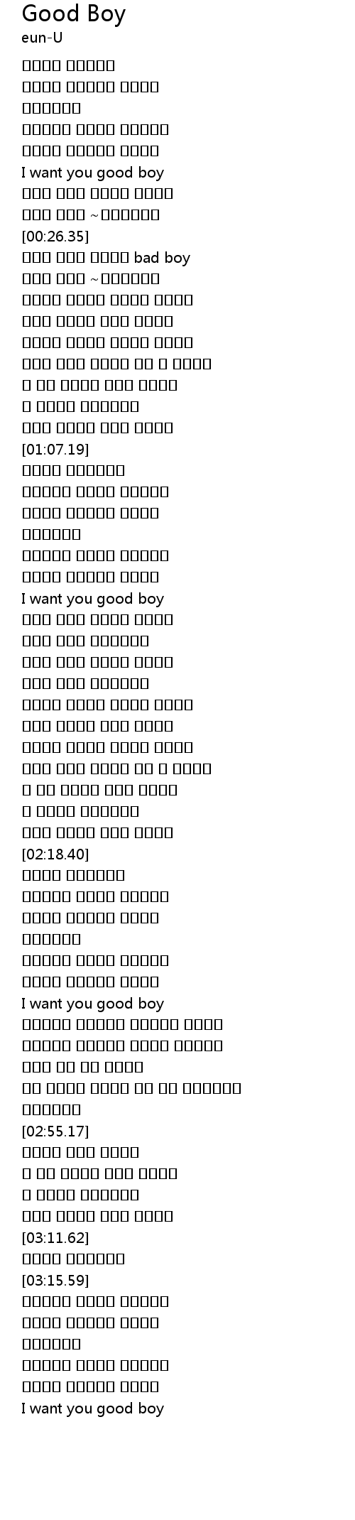 | [02:38.17] | I want you good boy |