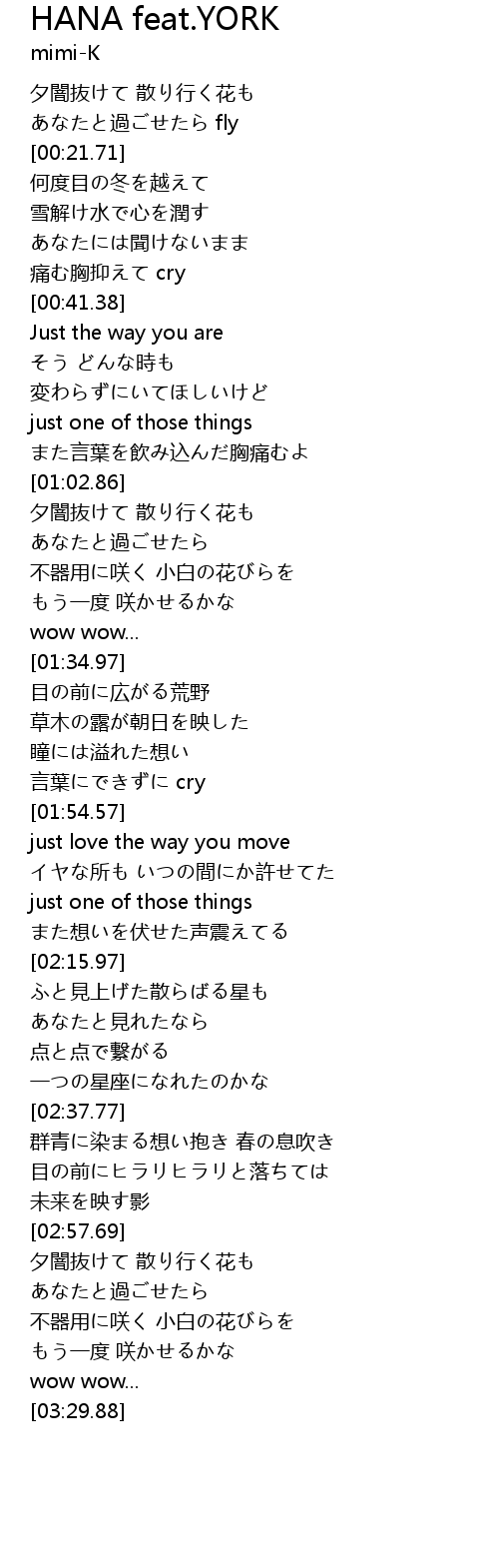 | [00:42.53] | Just the way you are |