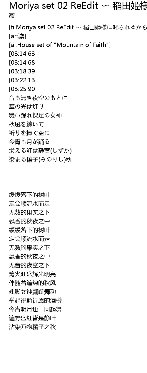 | [ti:Moriya set 02 ReEdit 〜 稲田姫様に叱られるから] | |