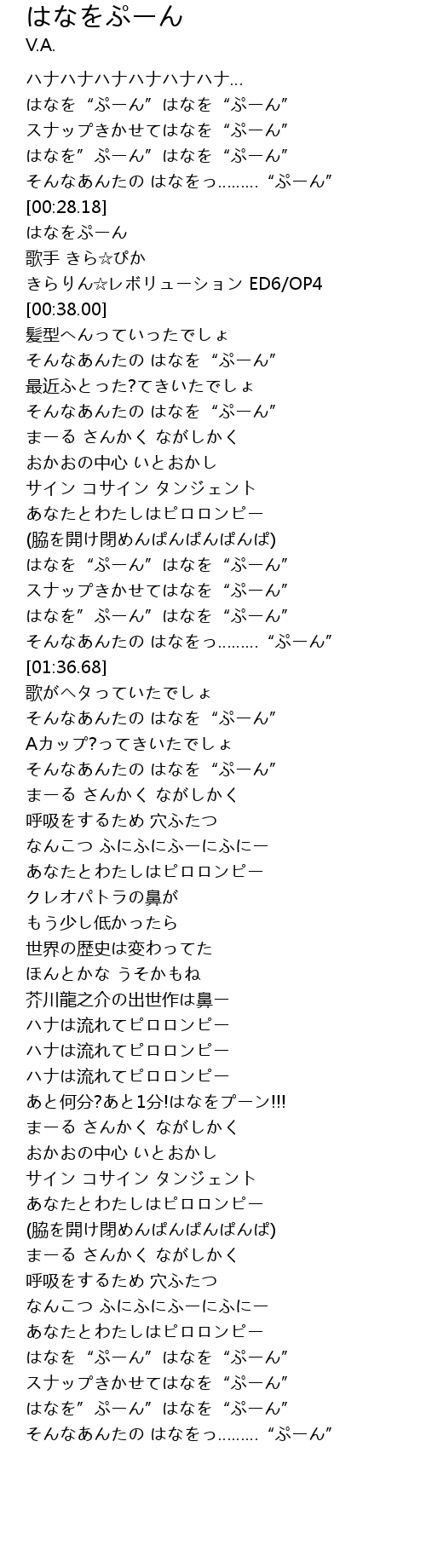 | [00:16.86] | そんなあんたの はなをっ………“ぷーん” |