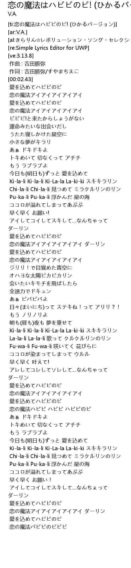 | [ti:恋の魔法はハビビのビ! (ひかるバージョン)] | |