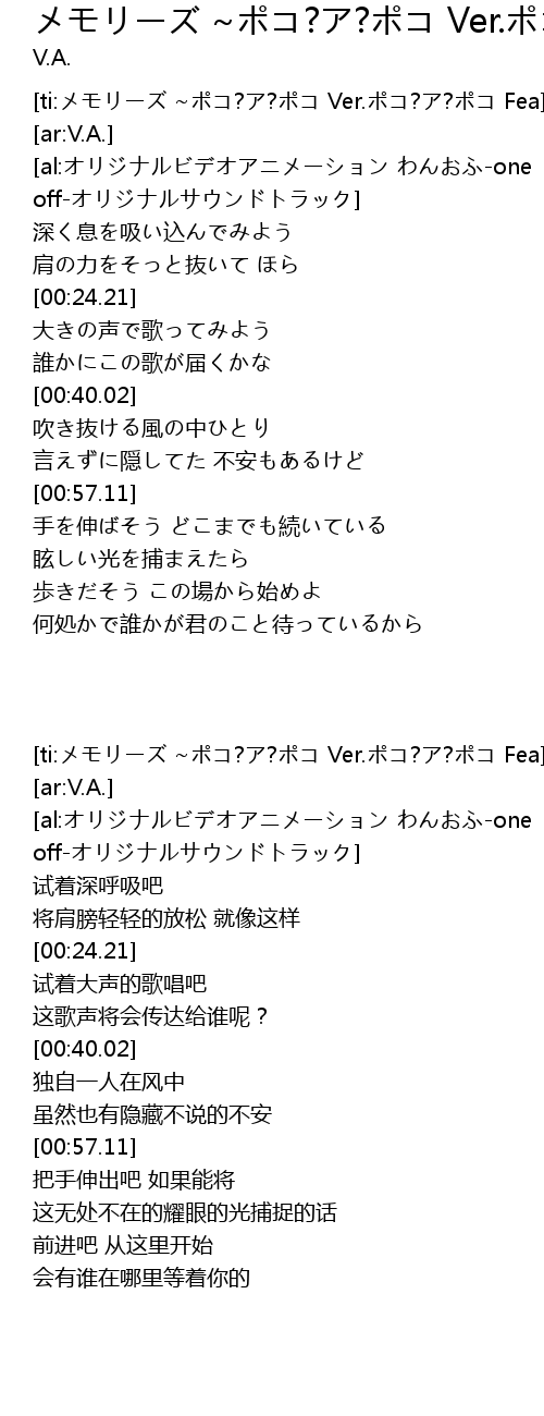 | [ti:メモリーズ ~ポコ?ア?ポコ Ver.ポコ?ア?ポコ Fea] | |