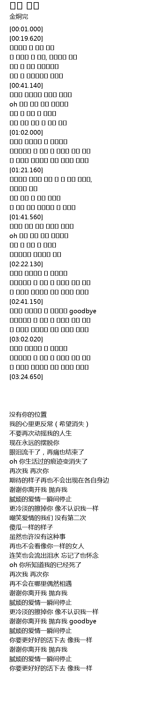 고마워 떠나줘서 날 버려줘서 goodbye |