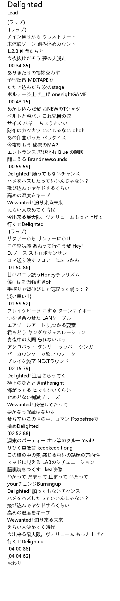 | [03:56.58] | 行くぜDelighted |
