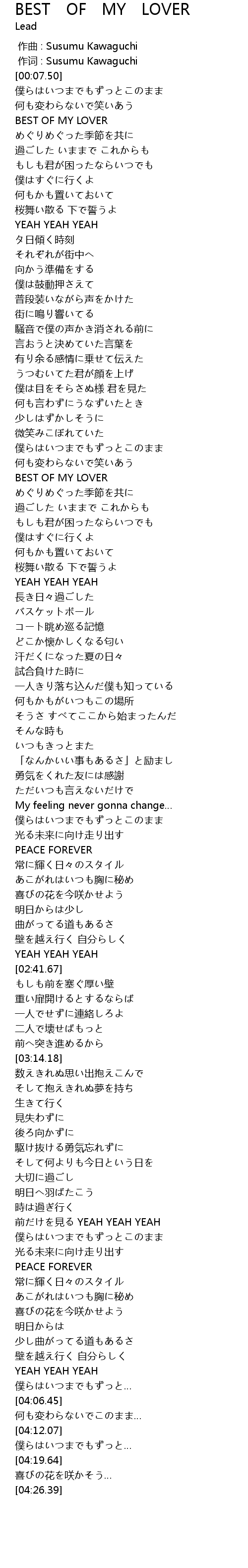 | [00:00.00] | zuò qǔ : Susumu Kawaguchi |