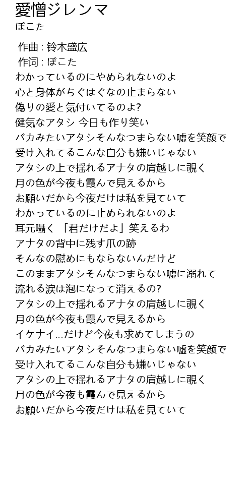 | [01:38.62] | アナタの背中に残す爪の跡 |