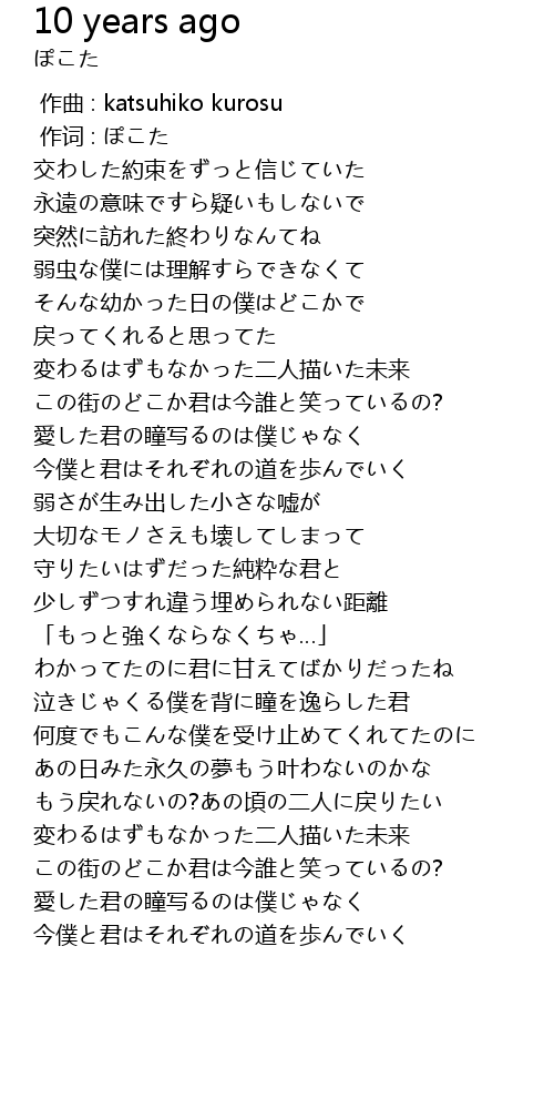 | [00:43.43] | そんな幼かった日の僕はどこかで |