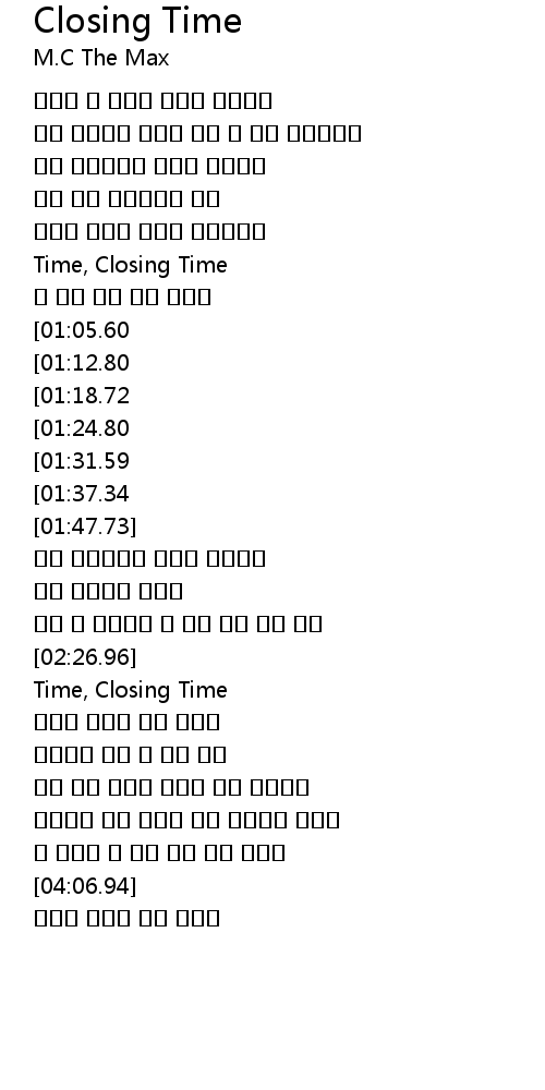 | [03:34.88][01:18.72] | Time, Closing Time |