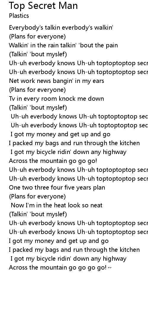 | [00:30.76] | Uh-uh everbody knows Uh-uh toptoptoptop secret |