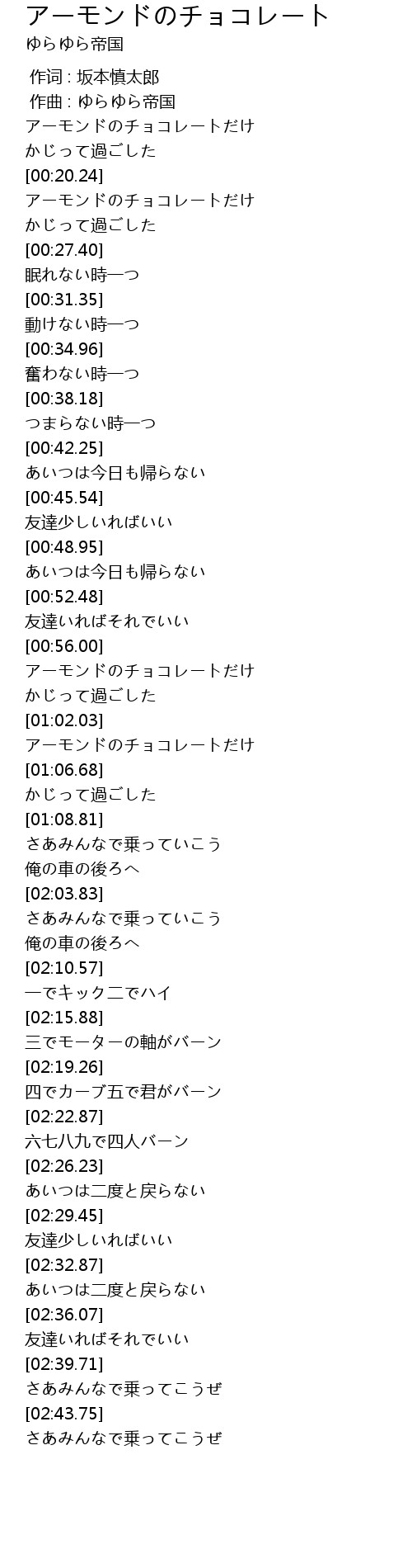 | [00:57.43] | アーモンドのチョコレートだけ |