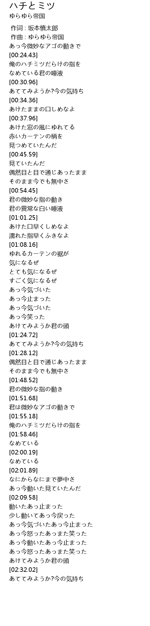 | [01:55.70] | 俺のハチミツだらけの指を |