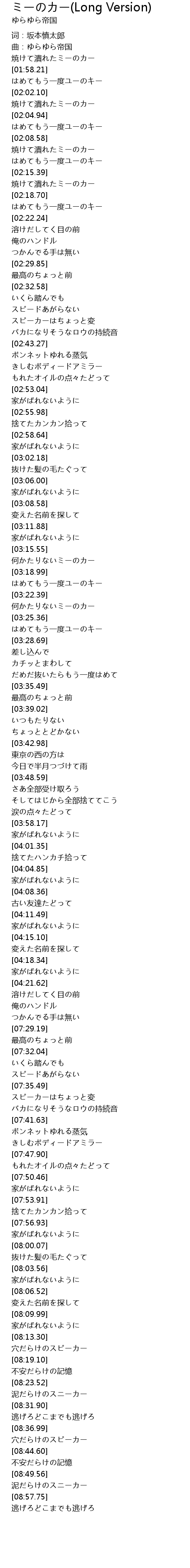 | [02:02.82] | 焼けて潰れたミーのカー |