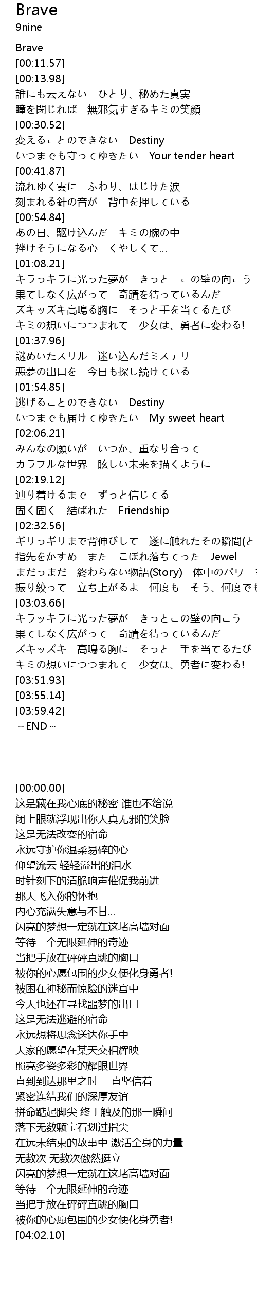 | [00:00.00] | Brave |