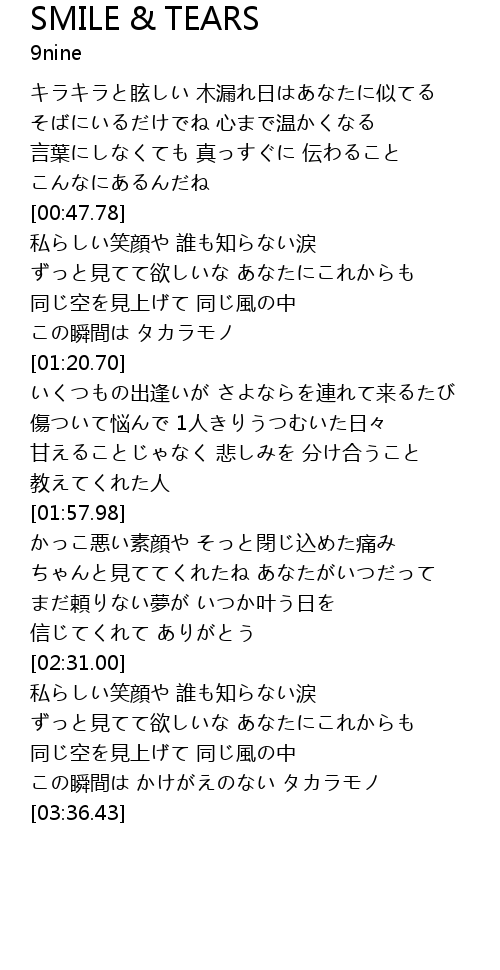 | [00:49.53] | 私らしい笑顔や 誰も知らない涙 |